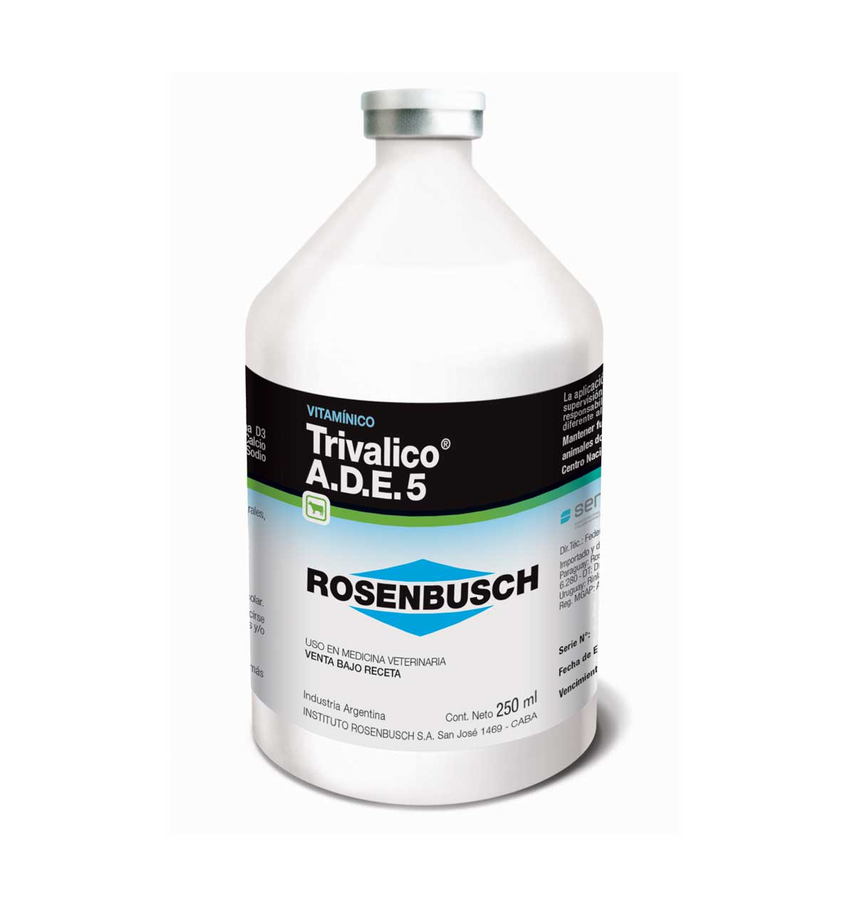 Composición: Vitamina A 5.000.000 U.I., Vitamina D3 2.000.000 U.I., Vitamina E 1.000 U.I., Calcio borogluconato 10 g, Magnesio hipofosfito 6 g, Sodio selenito 0,134 g, Excipiente c.s.p 100 mL.